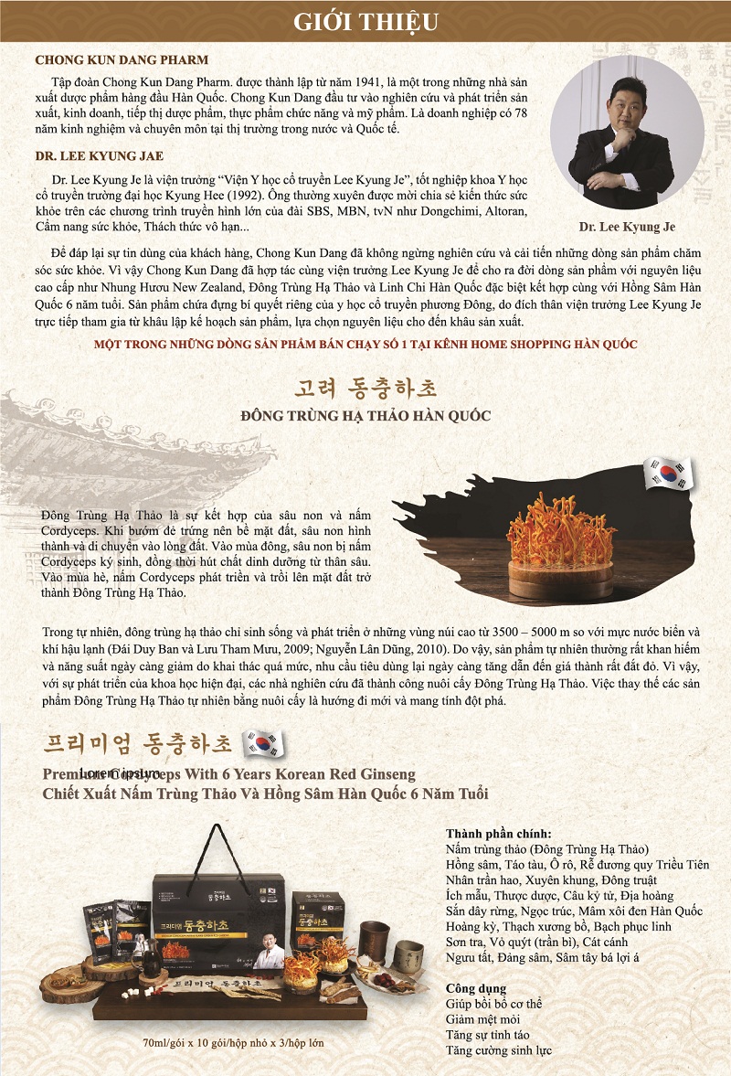 TPCN Chiết Xuất Nấm Trùng Thảo & Hồng Sâm Hàn Quốc 6 Năm Tuổi Premium Cordyceps Withs 6 Years Korean Red Ginseng Hộp 30 gói * 70ml (Date 03/2028) ĐÔNG TRÙNG HẠ THẢO HÀN QUỐC - 고려 동충하초 Từ xưa đến