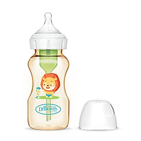 ✨[ WB91018-CH ] Bình sữa Dr.Brown's cổ rộng, nhựa PPSU, 270ml, họa tiết hình con sư tử