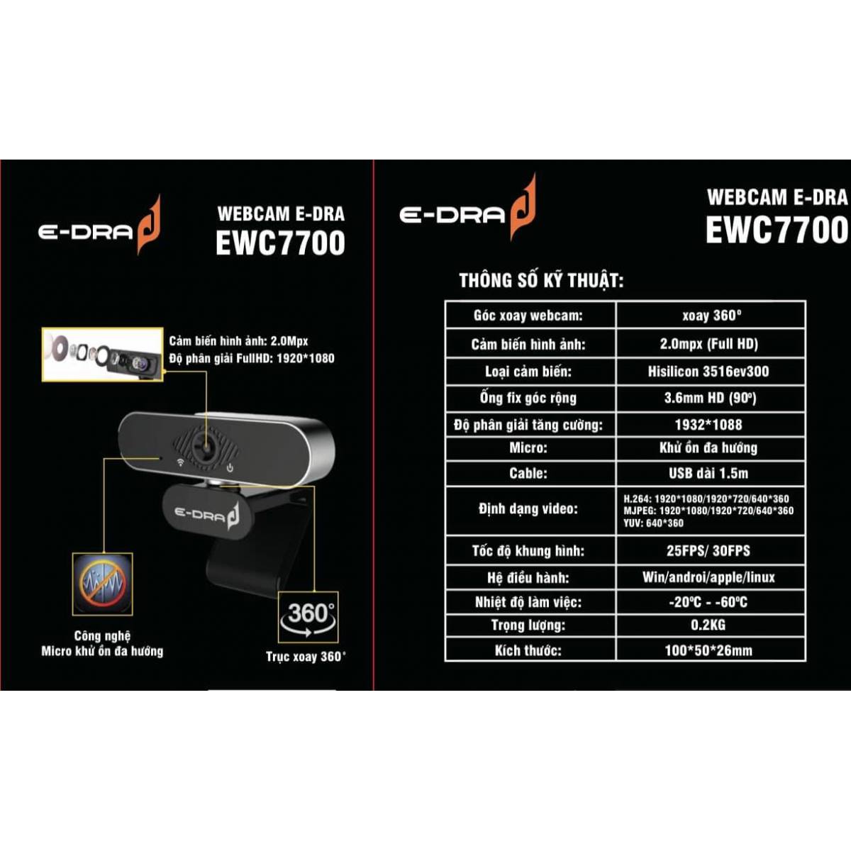 ✨Webcam E-Dra EWC7700 FHD 1080P - Hàng Chính Hãng