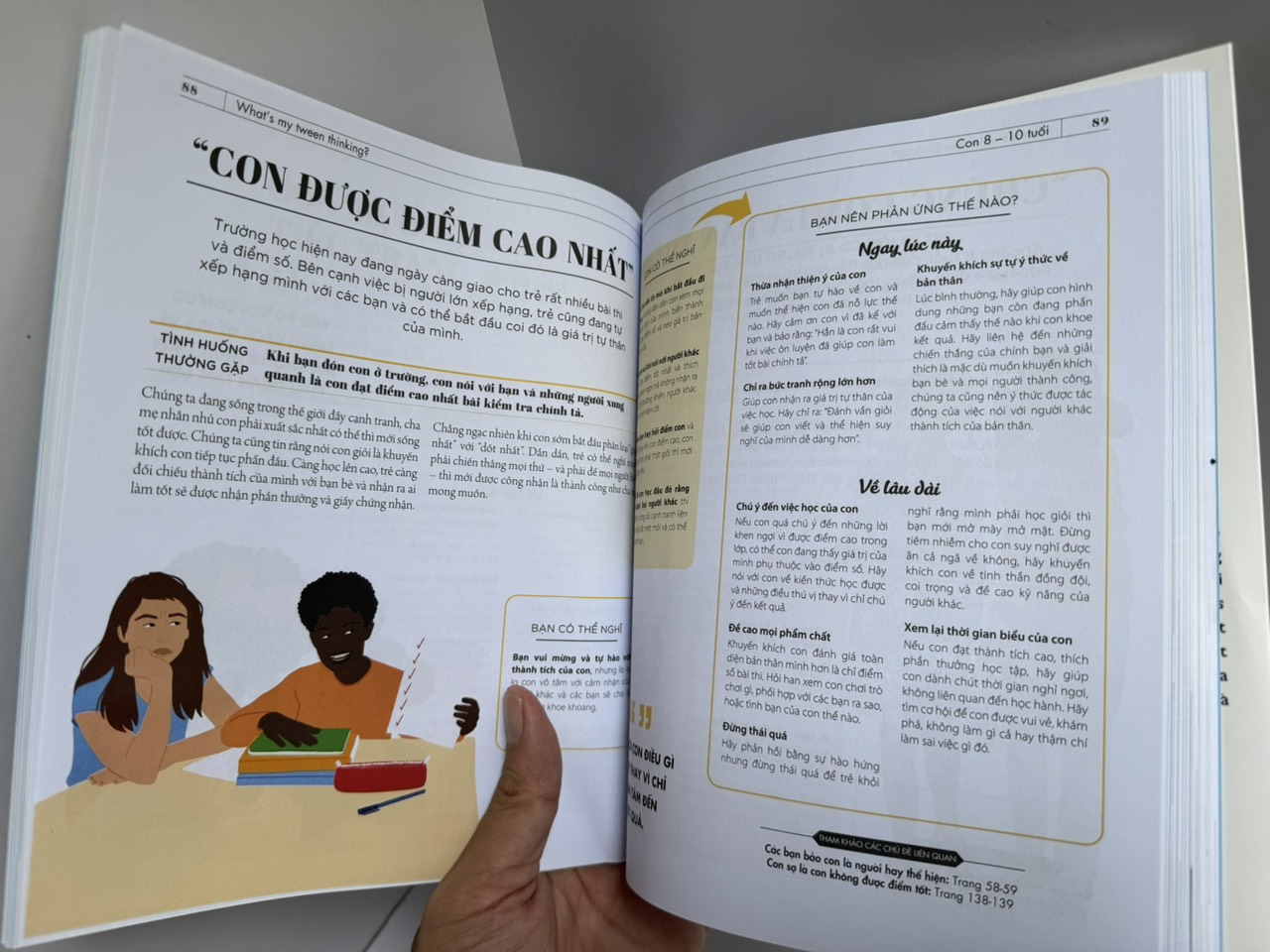 Cuốn sách nằm trong bộ ba sách tâm lý học ứng dụng dành cho cha mẹ do DK phát hành và Thái Hà Books nắm bản quyền tiếng Việt. Đây là một tài liệu tham khảo chi tiết và rõ ràng cho những bậc cha mẹ đang có con trong độ tuổi từ 8 đến 12. Với minh họa màu và cách trình bày khoa học, bạn đọc sẽ thấy thật dễ để nắm bắt những điều mình cần. Sau mỗi cuốn sách là bảng tra cứu, tiện lợi cho cha mẹ khi muốn tìm hiểu về một vấn đề gắn với tình huống cụ thể của con mình.