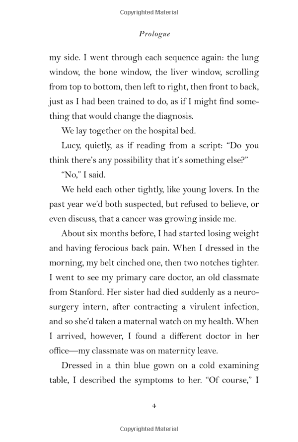 At the age of thirty-six, on the verge of completing a decade’s training as a neurosurgeon, Paul Kalanithi was diagnosed with inoperable lung cancer. One day he was a doctor treating the dying, the next he was a patient struggling to live.
