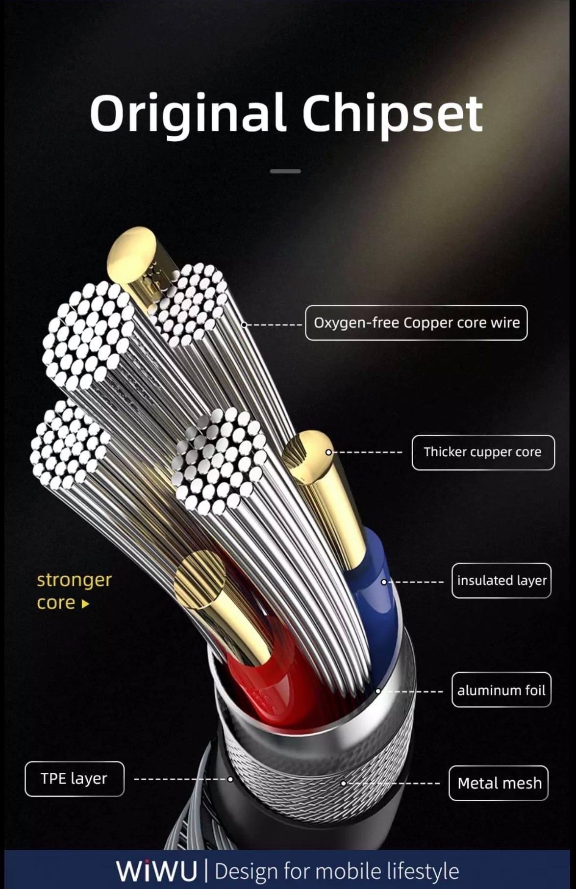 - Cáp sạc 3in 1 chính hãng wiwu 18k golden được làm từ chất liệu cao cấp lõi đồng chuyền tải dữ liệu nhanh , bọc vải dù chắc chắn , đàn hồi tốt chống gẫy đứt gấp 10 lần so với các loại cáp thông thường