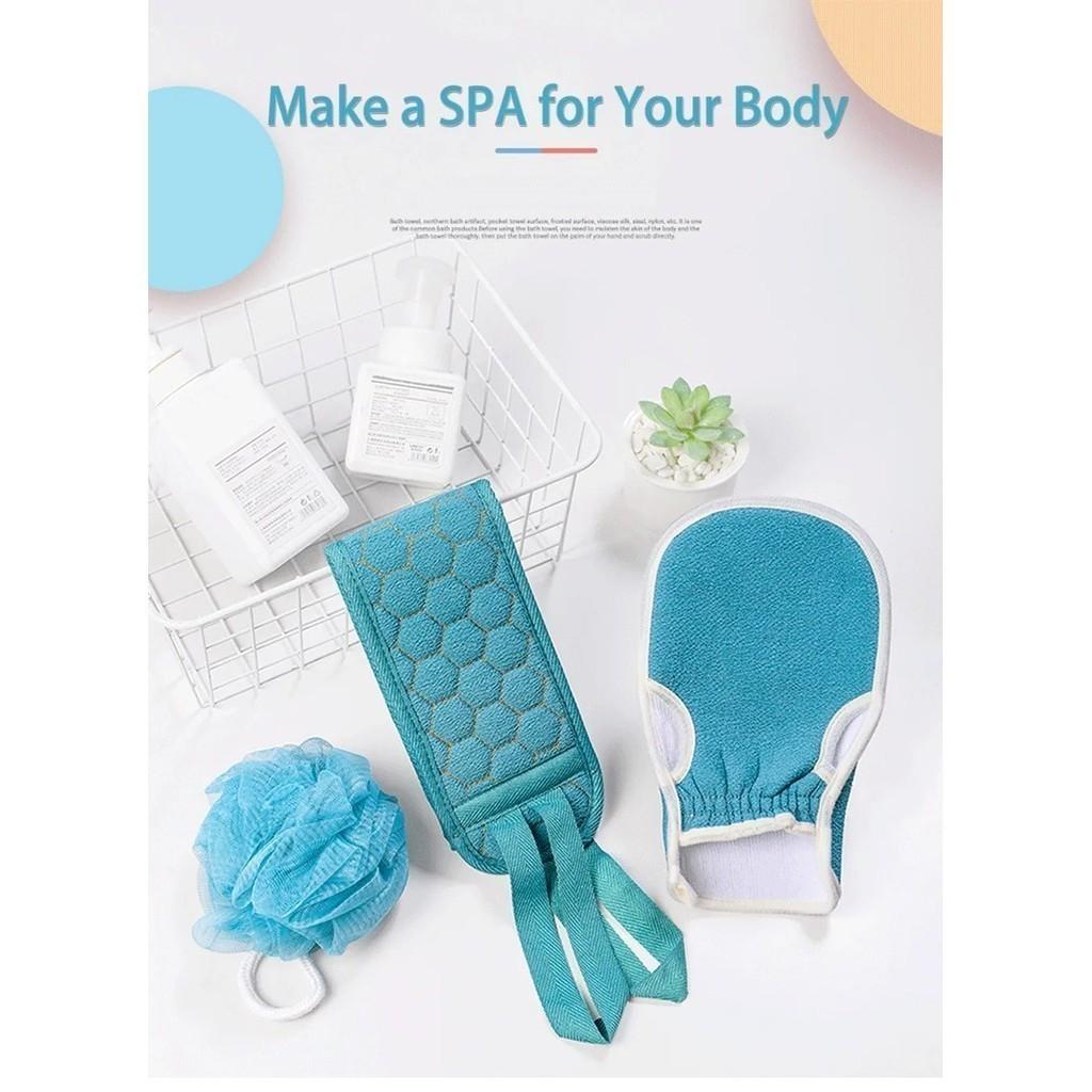 Combo 3 Món: Găng tay tắm tẩy da chết, dây tắm chà lưng, bông tắm tạo bọt.
