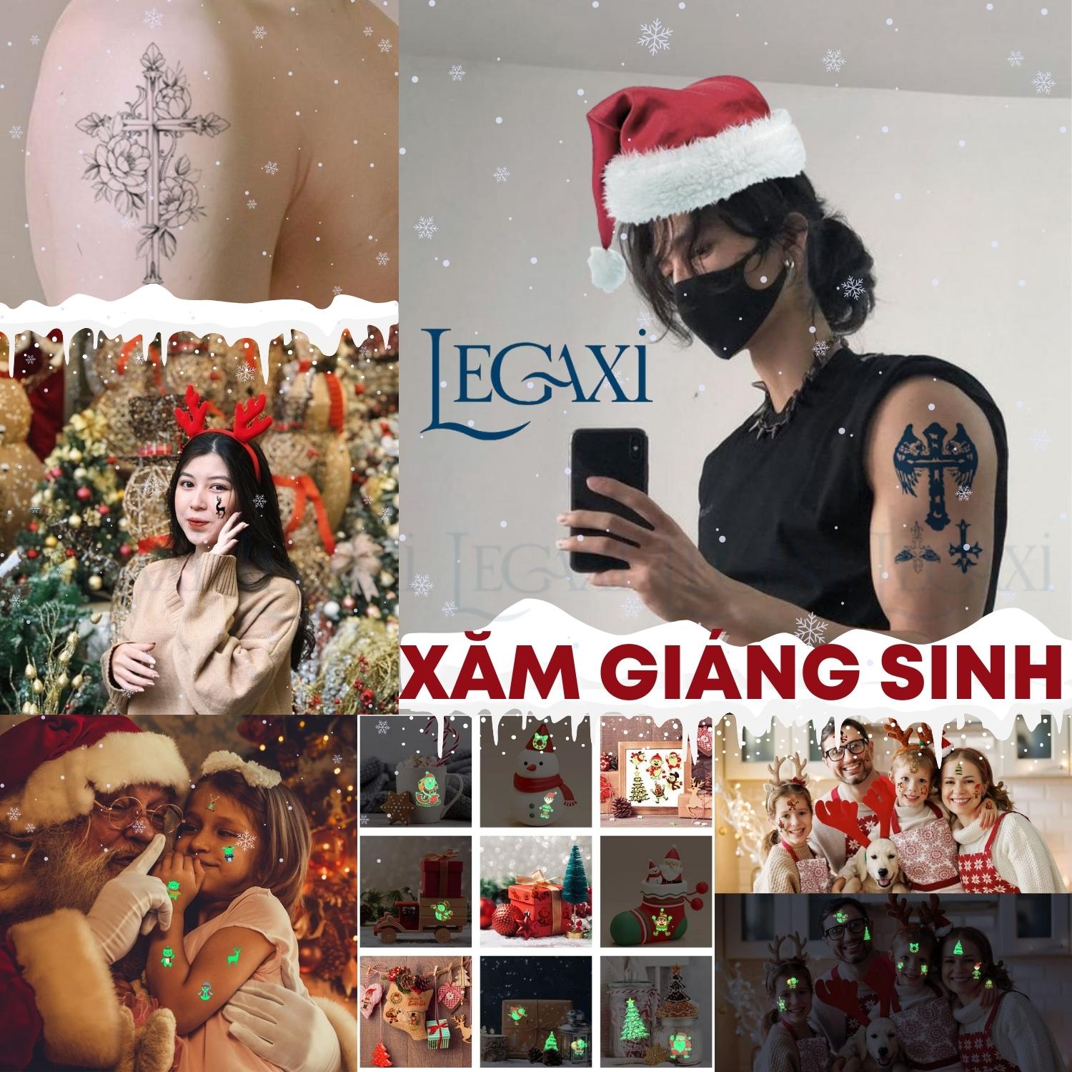 ✨Xăm giả hình dán trang trí giáng sinh noel tuyết ông già nô en tuần lộc phát sáng dạ quang cây thông mistletoe cây thập tự Legaxi