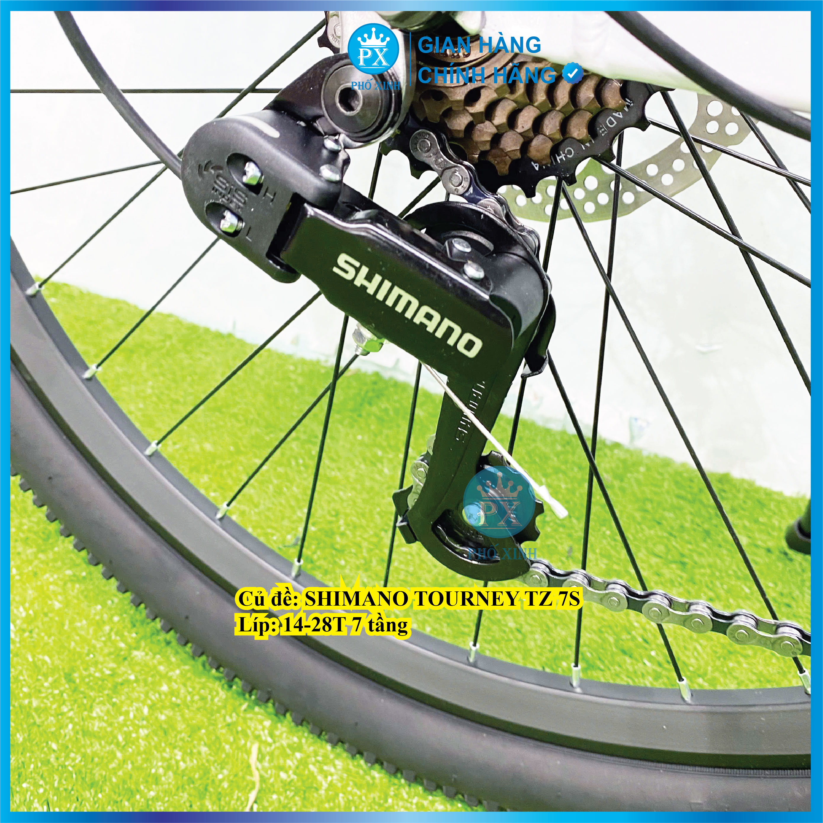 Khung Khung nhôm đi dây âm Tay gạt Shimanô EF 500 3×7 Phuốc Nhún vai nhôm có khóa hành trình Gạt đĩa Shimanô Tourney Gạt líp Shimanô Tourney Đùi đĩa Nhôm đen Lốp Kenđa 27.5