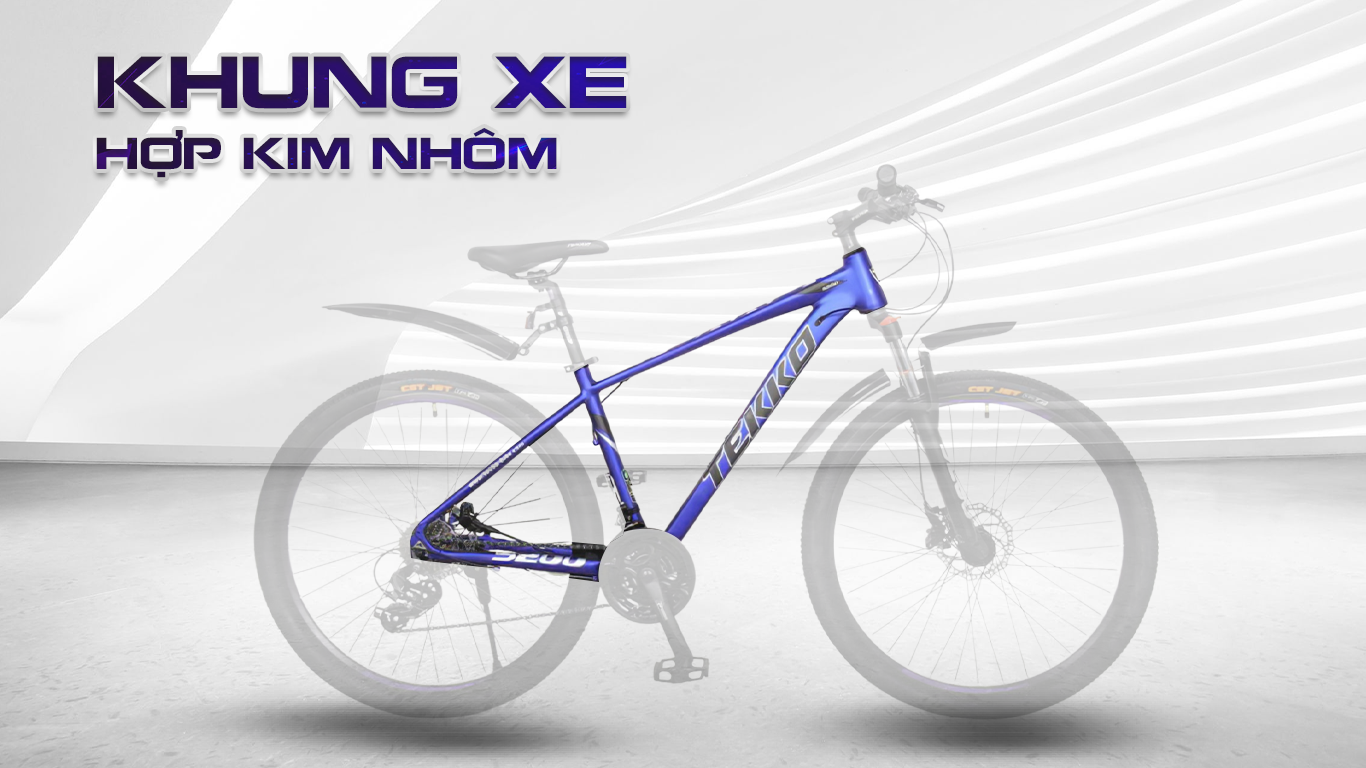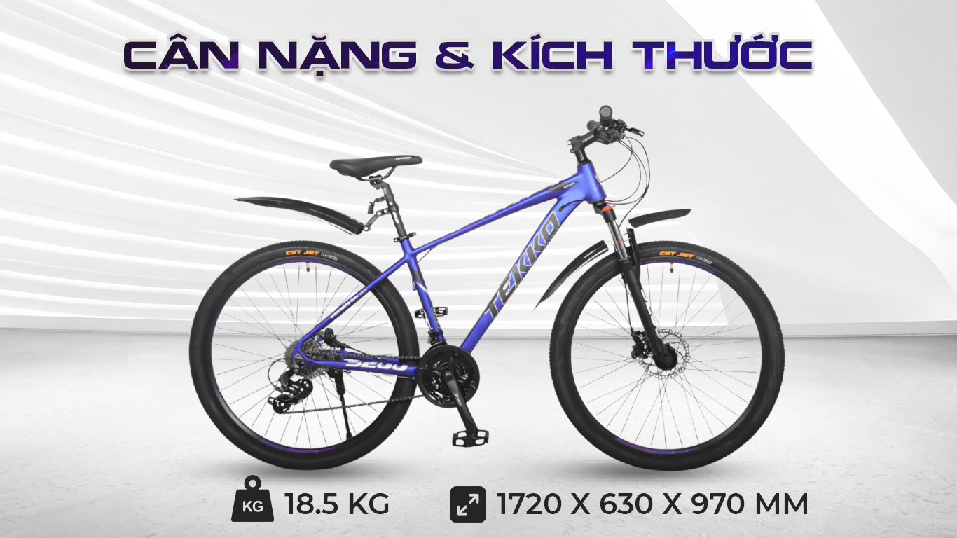 Mua tại TiktokThông số kĩ thuật: Kích thước bánh xe: Lốp 27.5inch I Hợp kim nhôm 2 lớp Khung sườn: Hợp kim nhôm nước sơn tĩnh điện Phụ kiện: Phanh đĩa - Yên da - Bàn đạp nhựa Ghi đông : tay lái thẳng - hợp kim nhôm Cân nặng : 18.5kg Kích thước : 1720 x 630 x 970 mm Tekko sành điệu, mẫu xe sẽ là lựa chọn tuyệt vời dành cho các bạn trẻ có mong muốn leo núi, đạp xe rèn luyện sức khỏe, đam mê vượt thử thách.
