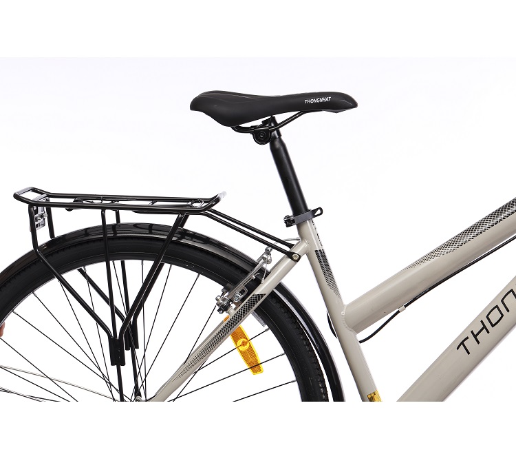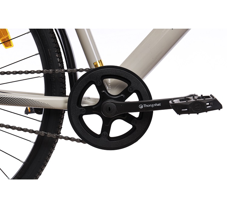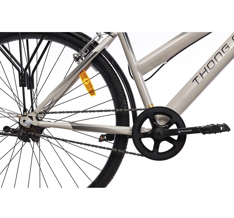 Mua tại Tiktok- Thiết kế tối giản, gọn đẹp Xe đạp đường phố thể thao Thống Nhất GN2.0 - 27 inch có kiểu dáng hiện đại, đường nét tinh tế, tông màu ghi, đen và cam mang đến cho bạn nhiều màu sắc để lựa chọn phù hợp với sở thích của mình. Mẫu xe đạp này ứng dụng công nghệ sơn tĩnh điện giúp duy trì tính thẩm mỹ cao, cho khả năng chống chịu tốt trước các điều kiện môi trường khác nhau. Đáp ứng nhu cầu chơi thể thao, làm phương tiện đi học, đi làm thường ngày của người trưởng thành có chiều cao trung bình khoảng 160 cm trở lên Sườn thép gia công chắc chắn Với khung bằng thép có độ bền cao, giữ cấu trúc xe vững chãi, cho khả năng chịu tải trọng toàn xe lên tới 110 kg. Thiết kế dây phanh được đặt dọc theo sườn xe một cách gọn gàng giúp xe đạp đường phố Thống Nhất trông đẹp mắt và hỗ trợ cho việc bảo dưỡng thuận tiện hơn. Chuyển hướng xe linh hoạt với ghi đông ngang Giống như khung sườn, ghi đông cũng được làm từ thép, vật liệu giúp tay lái cứng cáp kết hợp thiết kế ngang đơn giản giúp bạn kiểm soát hướng đi, lái xe dễ dàng. Bộ phận tay nắm được gắn chặt vào ghi đông, chế tạo cho độ bám cao để bạn nắm ổn định, không sợ trượt tay trong khi lái xe đạp đường phố Hệ thống phanh nhạy bén, sử dụng an toàn Tích hợp phanh vành trước và sau cho phản hồi nhanh mỗi khi bạn thắng xe, nhờ đó giúp đảm bảo cho người lái xe an toàn mỗi khi cần dừng xe lại hoặc xử lý tình huống khẩn cấp. Ngoài ra, với kết cấu đơn giản, hệ thống phanh dễ thay mới và bảo trì, giúp tiết kiệm chi phí và thời gian cho bạn tối đa. Phuộc cứng hạn chế rung lắc Mẫu xe đạp Thống Nhất này được trang bị phuộc trước bằng thép rắn chắc giúp giữ cho xe di chuyển ổn định từ mặt đường phẳng cho đến những đoạn đường gồ ghề, khó di chuyển. Yên xe mềm mịn, ngồi thoải mái mọi lúc Chất liệu da cho yên xe ngồi êm ái trong suốt thời gian bạn lái xe, dễ dàng lau chùi khi bám bẩn. Yên phụ cứng cáp, chịu lực tốt, đáp ứng tải trọng 30 kg cho bạn chở hàng hóa hoặc người tiện lợi. Di chuyển mượt mà với bánh xe 27 inch Cả hai bánh xe đều có kích thước 27 inch phù hợp với cấu trúc của toàn bộ xe khi bạn lái nhanh hay chậm đều hoạt động ổn định, nhịp nhàng. Bộ phận lốp xe 27"x1 3/8 sử dụng bền, trên bề mặt có nhiều rãnh giúp tăng tính ma sát cho quá trình lái xe thêm vững vàng. Vành xe bằng hợp kim nhôm có tính chống oxy hóa, chống ăn mòn tốt, khối lượng nhẹ nên cho tổng thể xe nhẹ hơn, di chuyển dễ dàng hơn khi đi qua những địa hình khó khăn. Tiện ích đi kèm Sử dụng đèn phản quang giúp phản chiếu ánh sáng, bảo vệ người dùng tốt hơn khi đi qua những đoạn đường khuất trong bóng tối. Có chân chống thiết kế ở vùng bánh xe sau giúp cho xe tự đứng vững, không bị nghiêng, ngã mà không cần bất kỳ điểm tựa nào. Thông tin chung