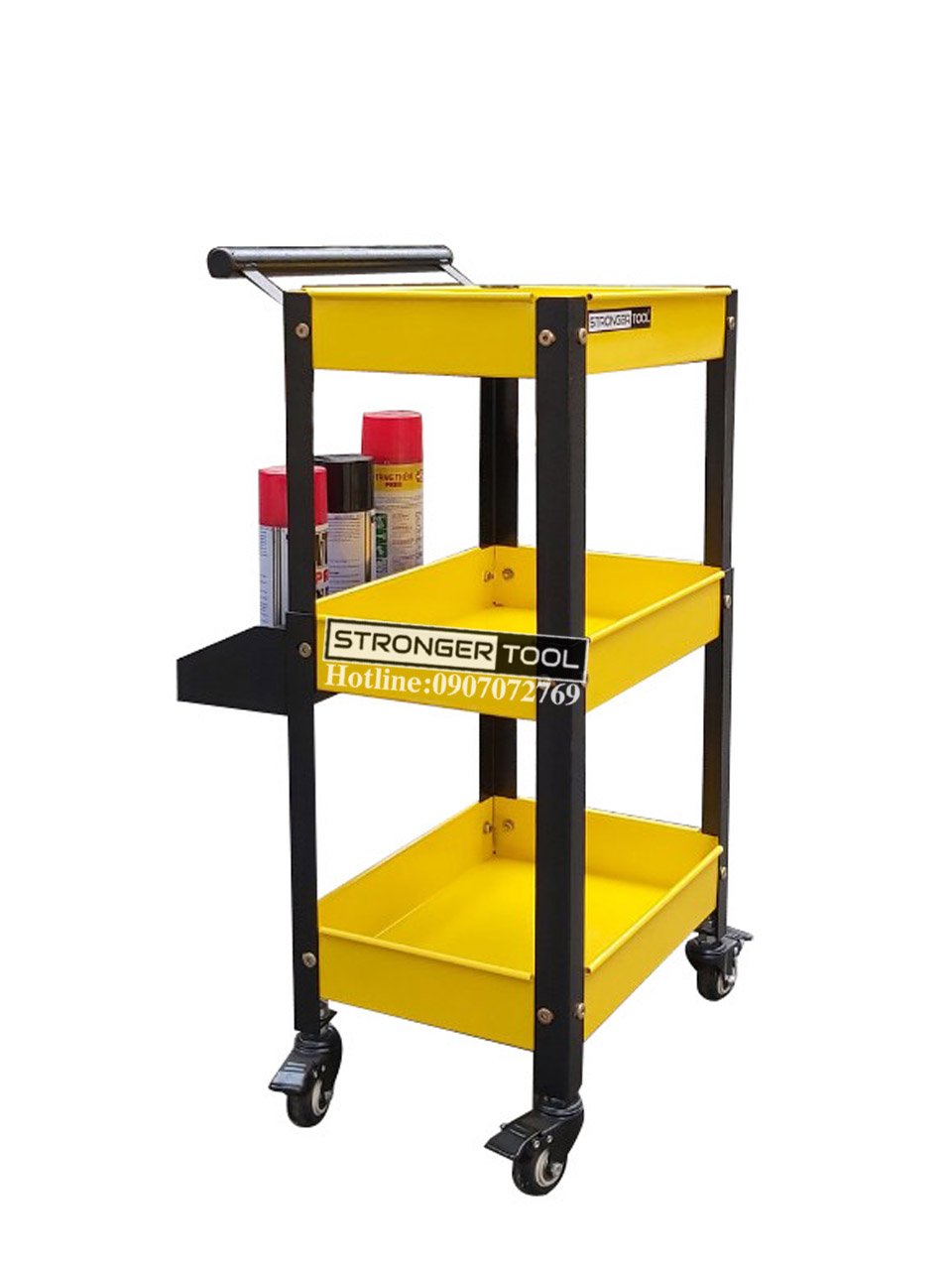 Kích thước: dài 720mm * rộng 390mm * cao 770mm Số khay: 3 khay + 1 ngăn kéo Chất liệu: thép tấm, sơn tĩnh điện Màu sắc: xanh biển, xanh chuối, đen, vàng, đỏ Khối