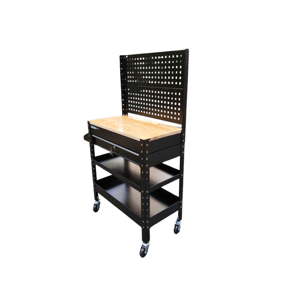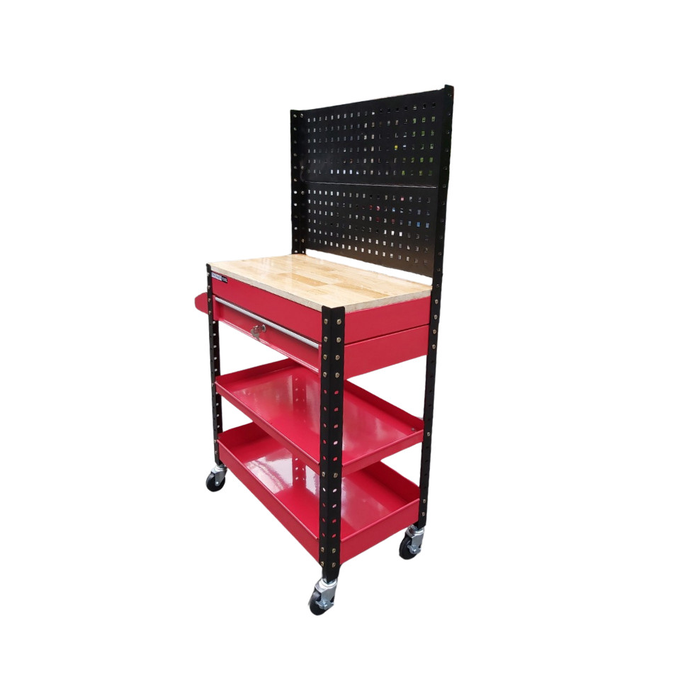 ✨XE ĐẨY DỤNG CỤ 1 NGĂN KÉO CÓ MẶT BÀN GỖ VÀ TẤM TREO