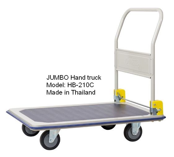 Xe đẩy hàng JUMBO Thái Lan HB-210C - IÊU CHUẨN CHẤT LƯỢNG: Được trang bị miếng nhựa bảo vệ cho tay đẩy thêm chắc chắn.- Kiểu xe : xe đẩy tay (Gấp được)- Kích thước cả thùng
