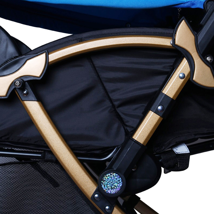 Xe được thiết kế là xe đẩy siêu nhẹ và gọn. Có thêm mái che ở bên trên.