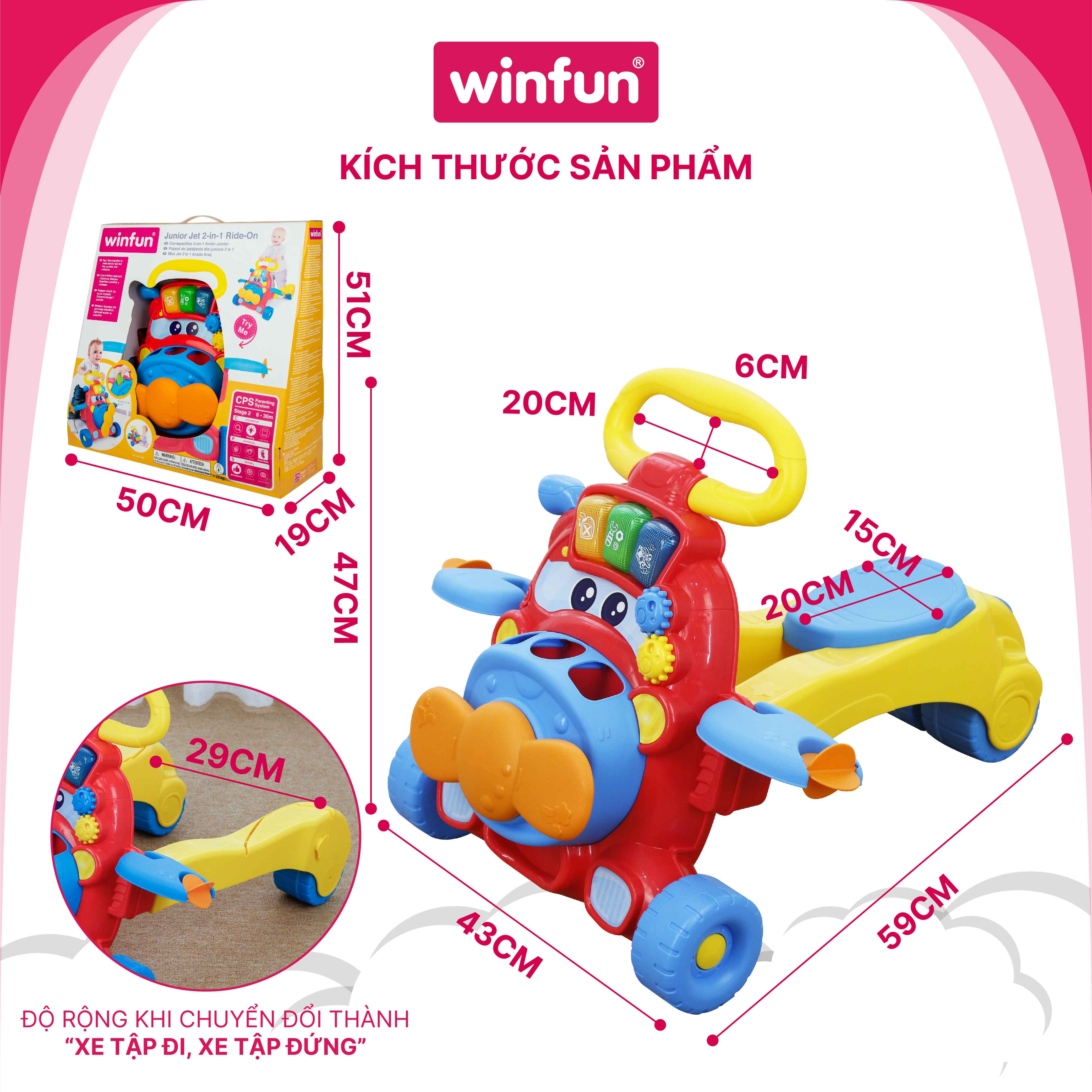 - Tên sản phẩm: Xe tập đi cho bé kết hợp xe chòi chân thả khối có nhạc Winfun