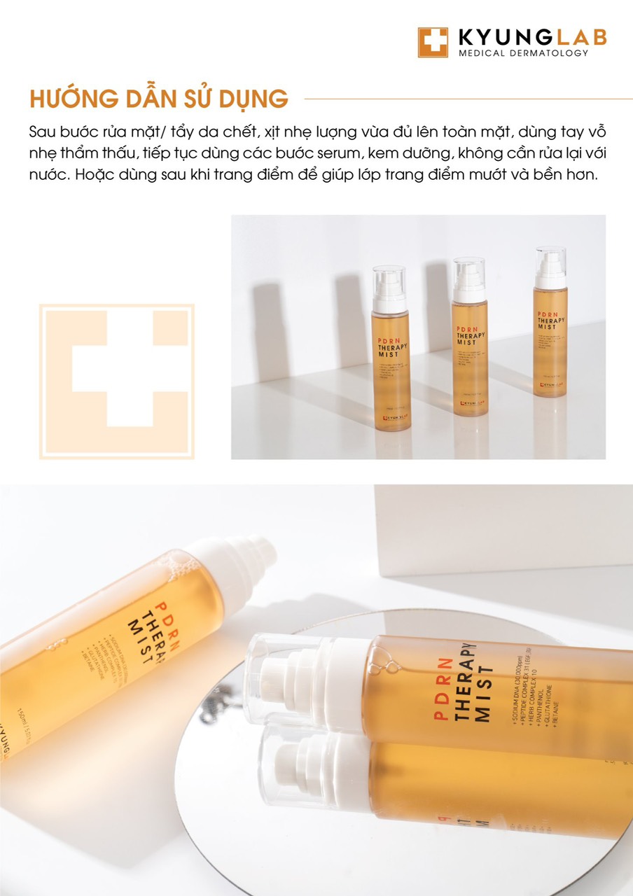 Xịt Khoáng Dưỡng Ẩm Kyung Lab PDRN Therapy Mist được nhập khẩu 100% từ Hàn Quốc, tinh chất từ tế bào gốc PDRN, làn da lập tức dịu lại, xóa tan mọi dấu hiệu mệt