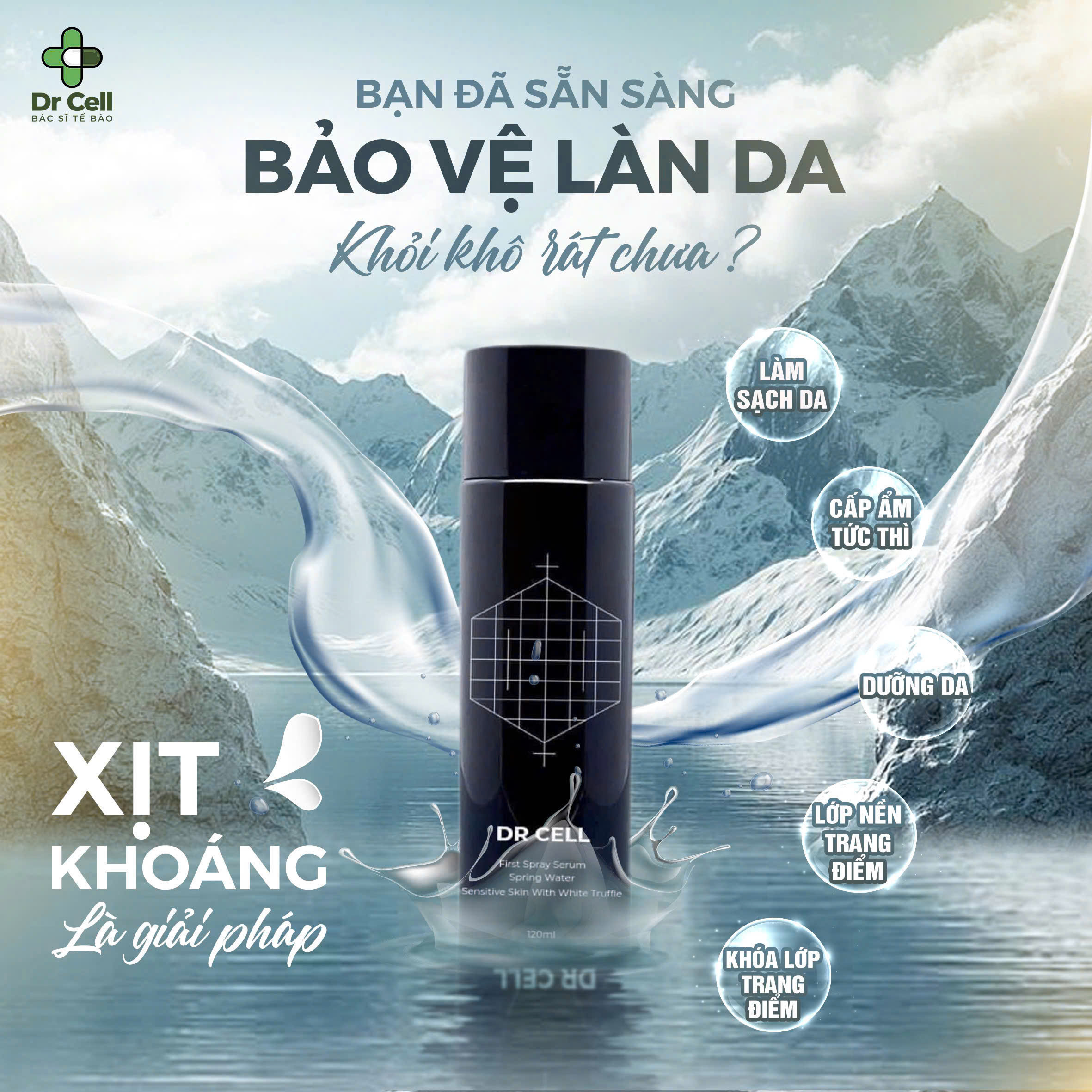 Serum khoáng chất Dr Cell với độ tinh khiết & đặc tính làm dịu mang cảm giác tươi mát, dễ chịu, dịu nhẹ da ngay tức thì.