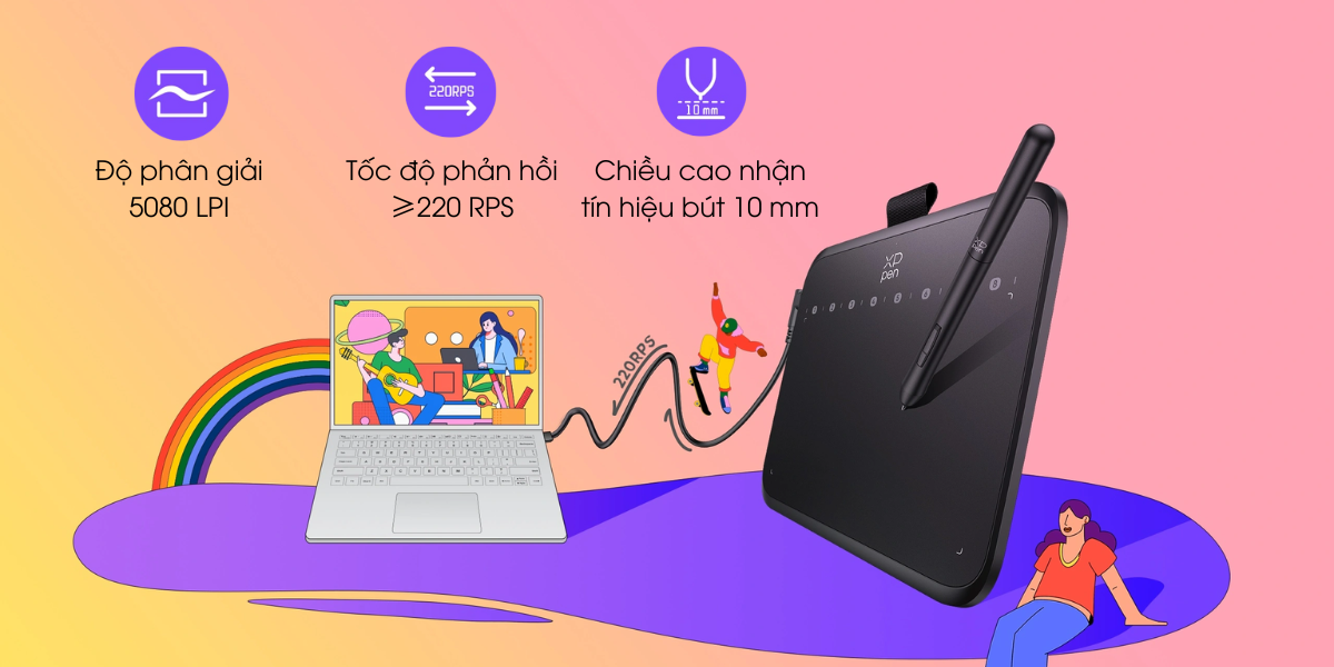 - Tốc Độ Phản Hồi Cao, Trải Nghiệm Mượt Mà XP-Pen Deco 640 tốc độ phản hồi nhanh, Deco 640 cho phép thao tác liền mạch, không bị gián đoạn. Điều này đặc biệt phù hợp với các công việc yêu cầu chi tiết và độ chính xác cao.
