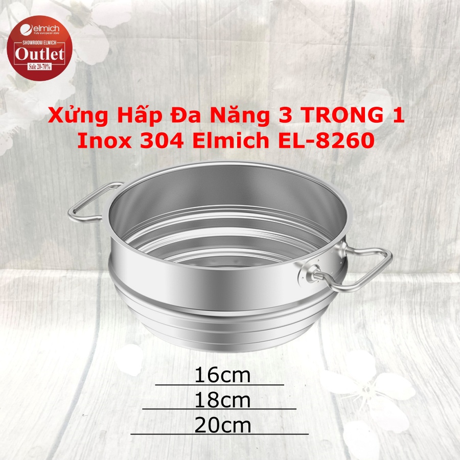 Mua tại TiktokXửng hấp đa năng Inox 304 Elmich EL-8260 size 16,18,20cm
