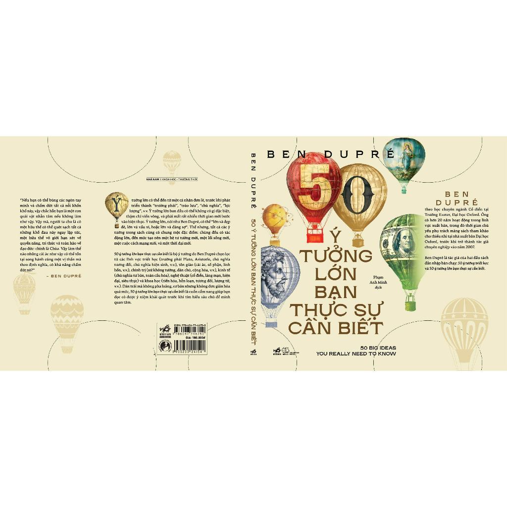 50 ý tưởng lớn bạn thực sự cần biết là bộ ý tưởng do Ben Dupré chọn lọc từ các lĩnh vực triết học (trường phái Plato, Aristotle, chủ nghĩa tương đối, chủ nghĩa hiện sinh, ), tôn giáo (cái ác, số phận, linh hồn, ), chính trị (xứ không tưởng, dân chủ, cộng hòa, ), kinh tế (chủ nghĩa tư bản, toàn cầu hóa), nghệ thuật (cổ điển, lãng mạn, hiện đại, siêu thực) và khoa học (tiến hóa, hỗn loạn, tương đối, lượng tử, ). Dàn trải mà không pha loãng, cơ bản nhưng không đơn giản hóa quá mức, 50 ý tưởng lớn bạn thực sự cần biết là cuốn cẩm nang giúp bạn đọc có được ý niệm khái quát trước khi tìm hiểu sâu chủ đề mình quan tâm.