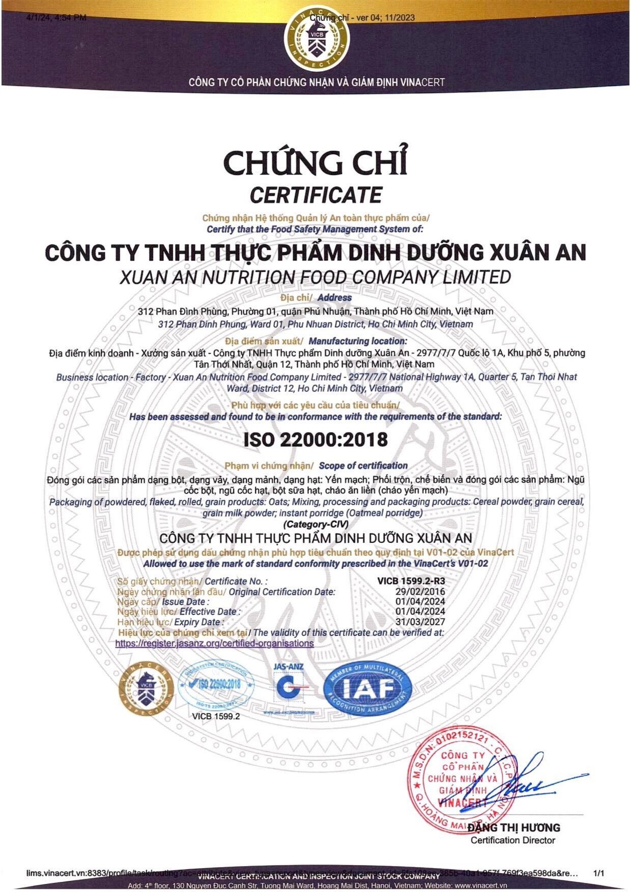 Yến mạch Úc Xuân An có nguyên liêu nhập khẩu trực tiếp 100% từ Úc . Sản phẩm có nhiều nhựa , trắng hơn và dai hơn .