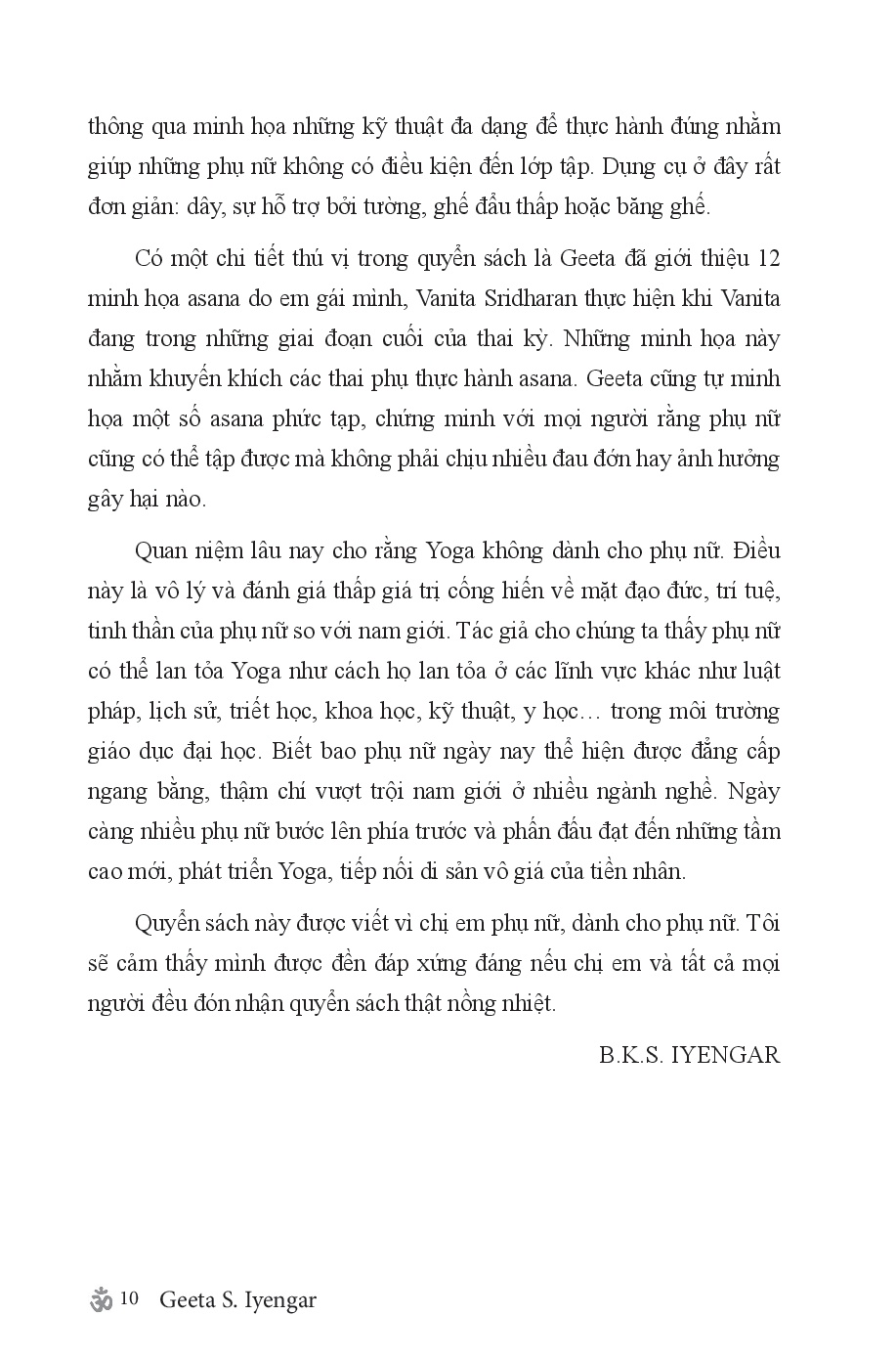 Yoga Toàn Thư (B. K. S. Iyengar): Yoga đã xuất hiện và luôn song hành với bề dày lịch sử của đất nước Ấn Độ, tuy vậy nhưng Yoga không thuộc quyền sở hữu